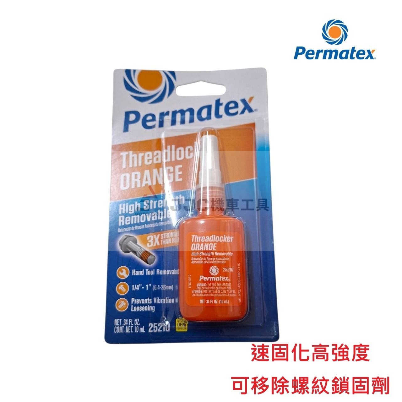 美國Permatex® (橘色) 10ml 速固化高強度 可移除螺紋固定劑 螺紋密封劑 缺氧膠 太陽牌